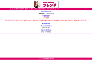 無店舗型で利用料金も安価ですが、フレンズは交際クラブですので、出会い系のような手軽さを求める方、スピーティーに女性と出会いたい方には少々難しいかもしれません。