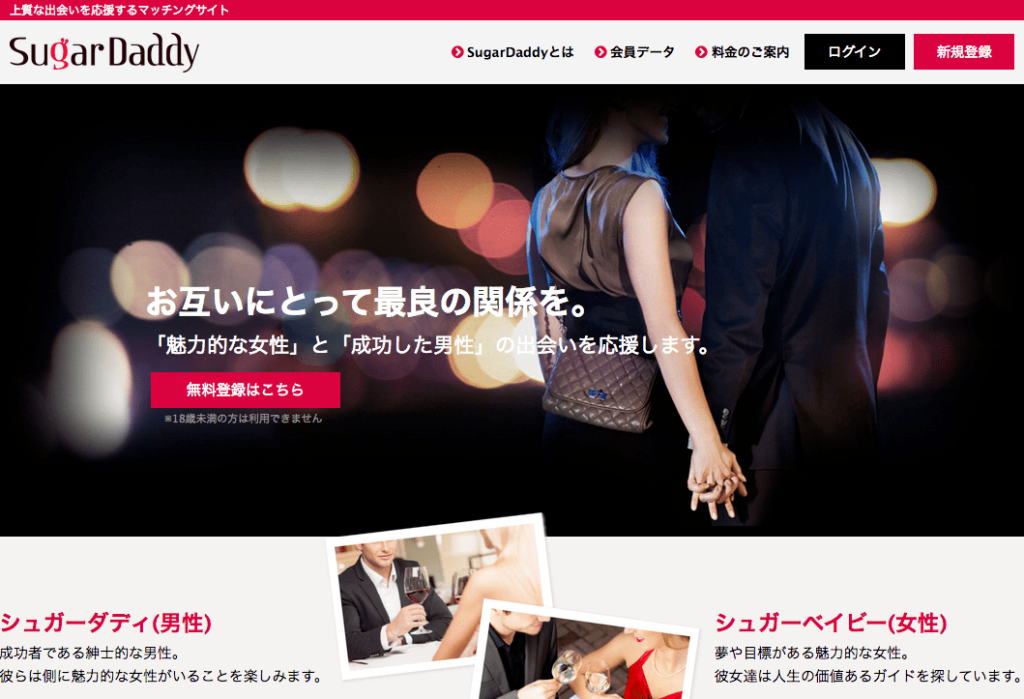 「シュガーダディ」は、パパ活と言えば「シュガダ」と言われる程有名なオンライン交際クラブ。