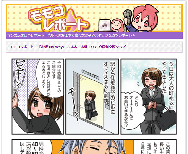 とある風俗系の求人サイト内に、赤坂マイウェイのレポート漫画がこちらに掲載されていたのでご紹介します。