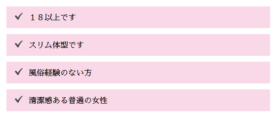 また、素人の一般女性にこだわって集客しているため、風俗に勤務経験のある方は入会できません。