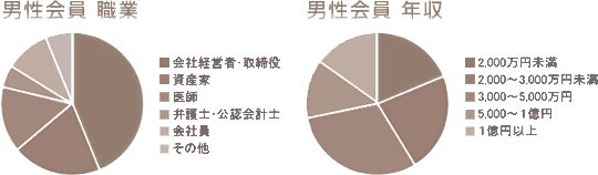 職業に制限は設けられていませんが、会社経営者、会社役員、資産家、医師、弁護士など社会的地位の高く、精神的にも経済的にも余裕のある方のみが入会しています。