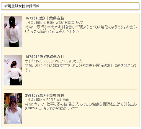 新規女性入会情報を随時更新されていますが、名前は一切記載されておらず、画像も後姿のみとなっています。