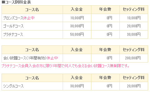 コースによって、マッチングできる女性ランクが異なり、マッチング料も変わります。