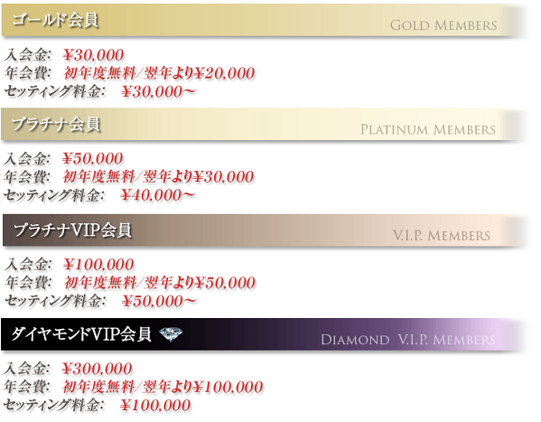 面談の後、会員専用サイトで使用するログインIDとパスワードが発行されます。各会員ランクで違うのは、セッティング可能な女性会員ランクの範囲です。