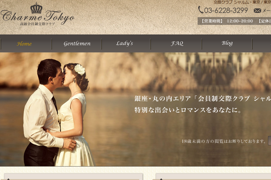 今回は、銀座丸の内にオフィスをかまえ、東京都内を中心にサービスを展開している交際クラブ、Charme Tokyo(シャルム東京)をご紹介したいと思います。