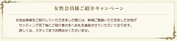 シャルム東京では、女性会員の紹介キャンペーンをおこなっています。