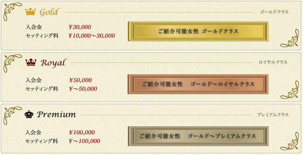 シャルム東京では、会員ランクと費用を以下のように設定しています。