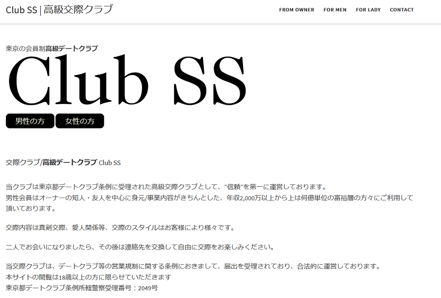 今回は、東京都港区六本木を拠点にサービスを提供している交際クラブ、Club SS(クラブエスエス)をご紹介します。