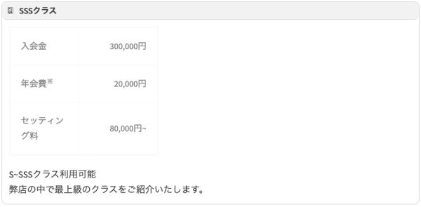 Club SSでは、会員ランクと費用を以下のように設定しています