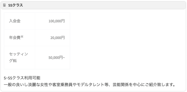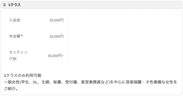 セレブな男性をターゲットとしていますが、金額設定は六本木で営業している交際クラブ・デートクラブと比較してみても一般的な設定です。