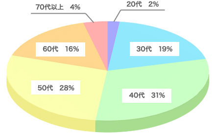 クラブレストランは、カジュアルなコンセプトと利用しやすい料金設定で幅広い年齢層の会員獲得を可能にしており、40代・50代が多くはありますが、30代の比率が他の交際クラブと比較しても多くなっています。