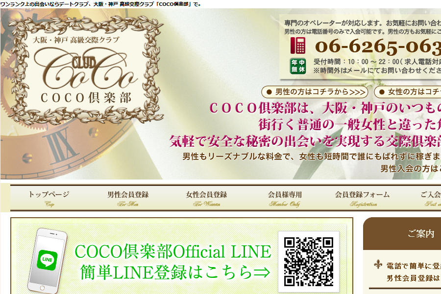 COCO倶楽部は、大阪と神戸を中心とした関西圏を対象に営業している交際クラブです。