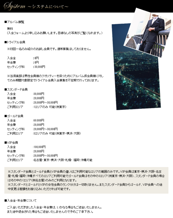 “芸能プロダクション直営”、“芸能プロダクションタイアップ”を全面的に出すことで、女性会員の質に拘っておりハイレベルな女性会員が揃っているということをアピールしています。