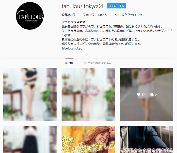 特にinstagramアカウントは新規女性会員の情報が発信されており、ファビュラス東京の雰囲気を掴みやすくなっています。