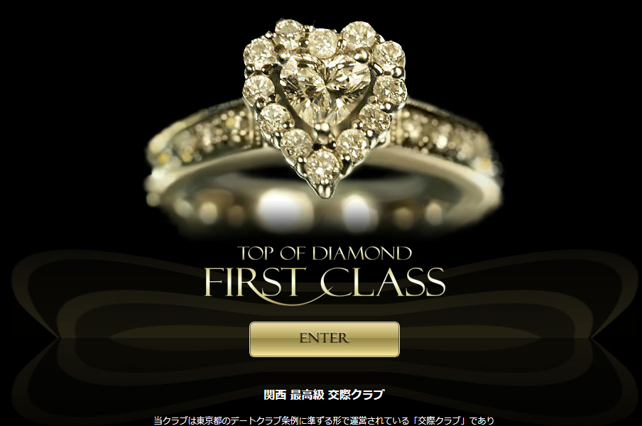 ファーストクラスのサイトトップには、”関西 最高級 交際クラブ”との記述があります。