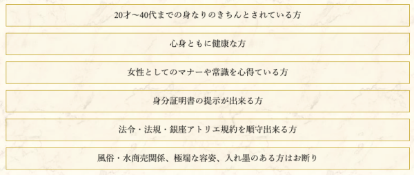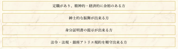 銀座アトリエでは、男性の入会資格を以下のように設定しています。