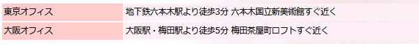 面談の場所は、東京と大阪の各オフィスで行われます。