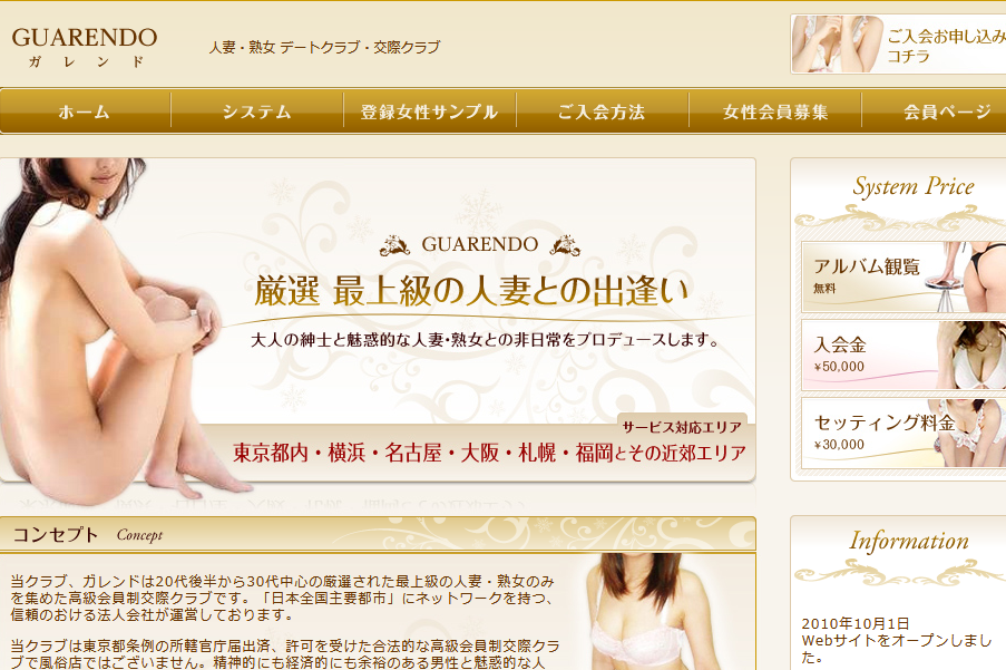 ガレンドは、全国に独自のネットワークを構築し、芸能プロダクションによって運営されている交際クラブです。