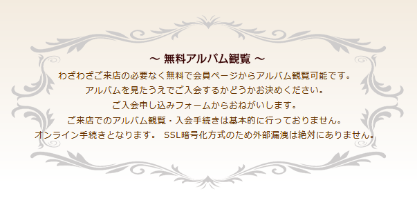 ガレンドでは、正式に入会手続きを行う前に会員専用ページへアクセスし、会員アルバムを無料で閲覧できます。