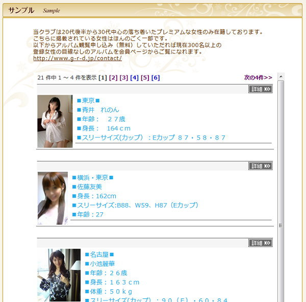 また、入会資格に“容姿・スタイルに自信のある方”とあるように、容姿端麗で成熟した女性のみが登録しており、ガレンドにより容姿が良くないと判断された方、太った方(体重60キロ以上)は登録できません。