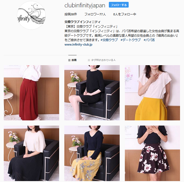 交際クラブ・デートクラブが運営するSNSアカウントは、ほとんど更新せず放置されているものが多いのですが、インフィニティはどのアカウントも頻繁に更新しています。
