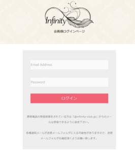 インフィニティに正式に入会すると、IDとパスワードが発行され会員専用ページにログインできるようになります。