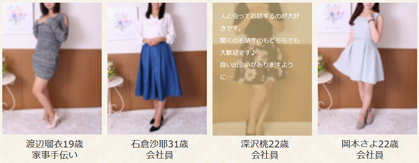 女性会員たちは、容姿端麗な方が多く、モデルやタレント、客室乗務員、秘書など幅広い職業の方が登録しています。