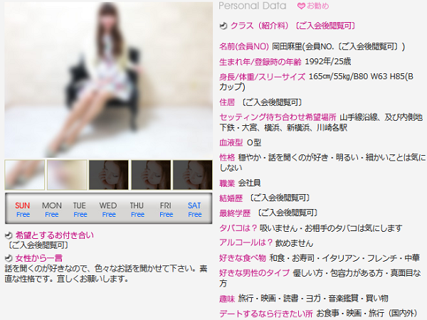 女性もランク分けされており、男性の会員ランクによってマッチングできる女性のランクも変わります。