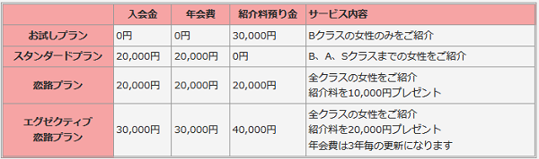 会員ランクは複数用意されており、最上位ランクのエグゼクディブ恋路プランはセッティング料は他のランクよりも高額ですが、年会費は3年毎の更新となります。