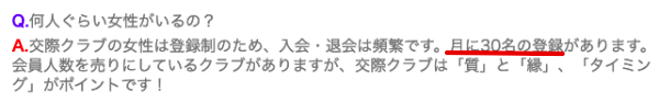しかし、大規模な交際クラブではなく会員数も決して多くない交際クラブで入会数が安定しているのは、しっかり営業されている証拠であるといえるでしょう。