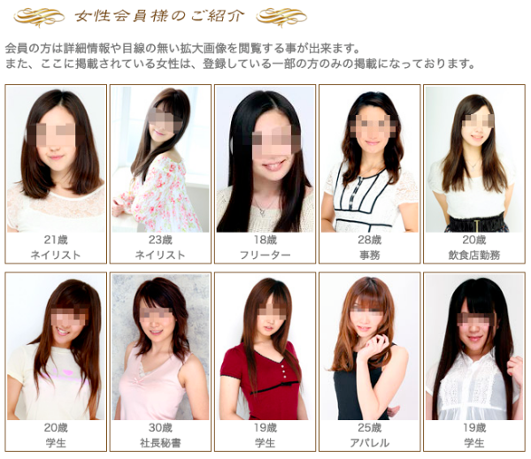 女性会員は一般的な学生やOLの方から芸能関係の方まで、年齢制限のみならず職業も実に幅広く集客しています。