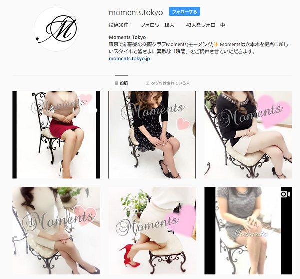 モーメンツは、2016年に営業を開始した、六本木では比較的新しい交際クラブです。
