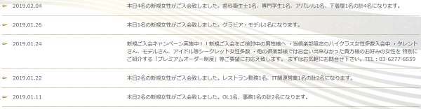 登録女性の情報は、男性のTOPページにて随時新着情報で公開されています。