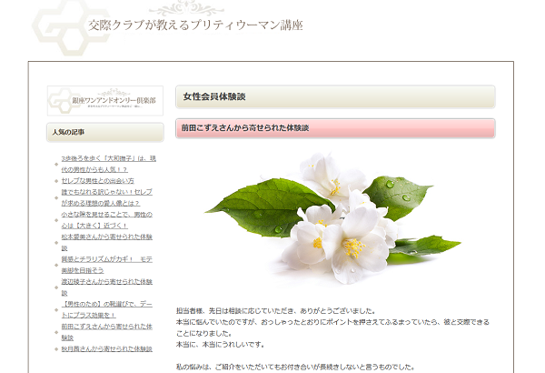 しかし、マニュアルどおりの接し方は、良くも悪くも女性会員の個性をつぶしており、自然体の一般女性とのお付き合いを望んでいる男性には不評のようです。