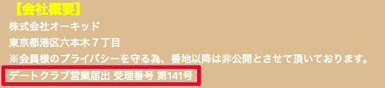 サイトやオフィスに届出番号の掲示がある交際クラブ・デートクラブは、安心安全に利用できる交際クラブだとの証なのです。