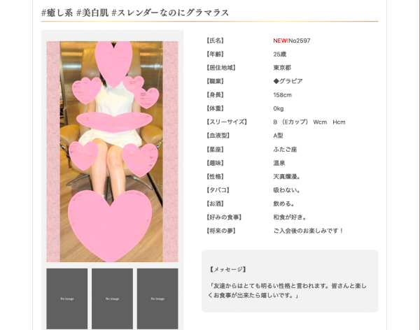 こちらでは、ぼかし無しの女性会員のプロフィールの閲覧、セッティング依頼の提出が可能です。