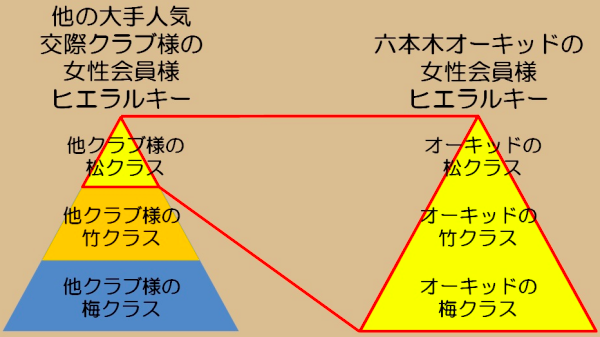 六本木オーキッドではそのレベルの高い女性会員の方々をさらに3つのクラスに分けています。