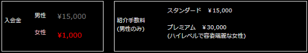 男性会員は高所得者限定としていますが、利用料金は非常にリーズナブルです。