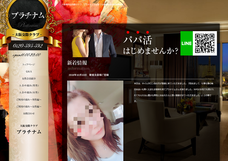 今回は、大阪梅田でサービスを提供している、大阪交際クラブ プラチナム(大阪プラチナム)をご紹介したいと思います。