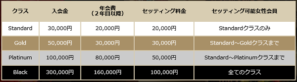 また、男性会員同様に女性会員もクラス分けされており、同じクラスの女性会員もしくは上位クラスの女性会員とのセッティングが可能です。