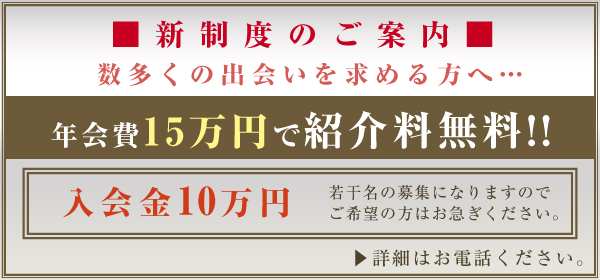 入会金は最低で30,000円、最高でも100,000円となっており、紹介料と合わせても交際クラブとしては比較的利用しやすい設定となっています。