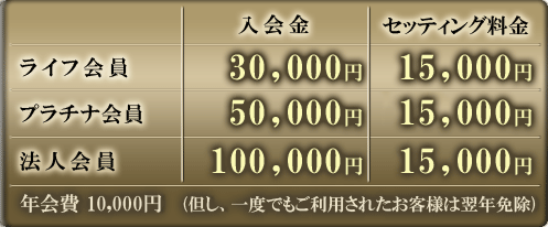 入会金100,000円、年会費150,000円で紹介料無料で渋谷ライフのサービスを堪能できます。