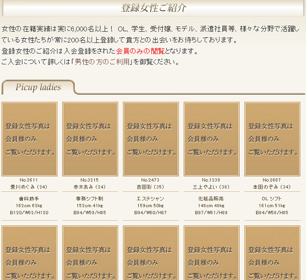 また、男女共に会員の写真は非公開となっており、仮会員・正規会員のみ専用ページから閲覧可能です。