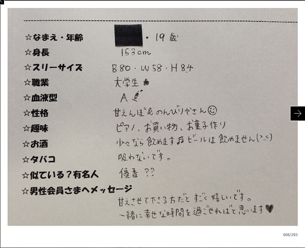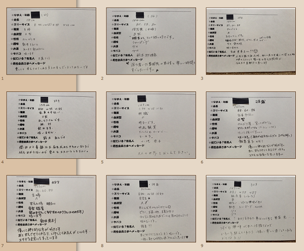 サイトでは女性会員の顔写真は一切公開されていませんが、手書きプロフィールを見ることができます。