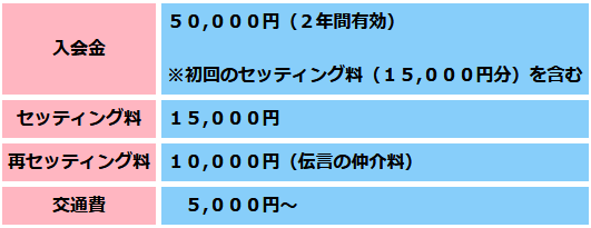 この他、女性会員に交通費として5,000円以上支払うシステムとなっています。