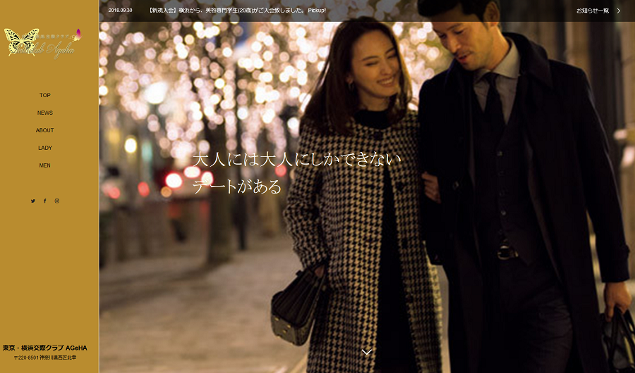 今回は、神奈川県横浜市西区で営業している交際クラブ、東京・横浜交際クラブ AGeHA(アゲハ)をご紹介したいと思います。
