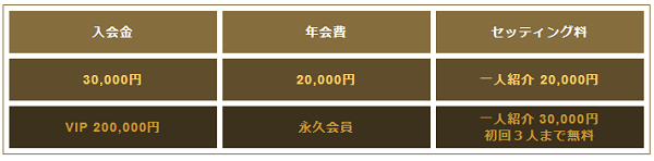会員ランクは2種類のみ、セッティング料も20,000円と30,000円のみと非常にシンプルな設定となっています。