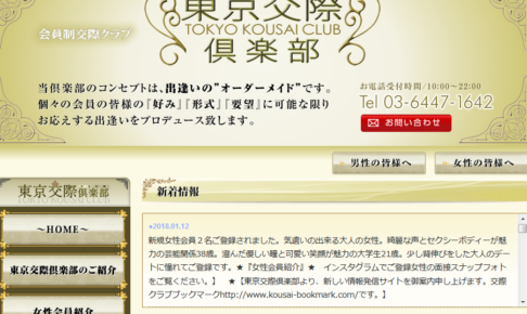 今回は、国際色豊かな街・麻布に事務所をかまえている『東京交際倶楽部』について、サービス内容や交際クラブ情報サイト等での評判などをまとめてみました。 東京交際倶楽部への入会を検討されている方の参考になると嬉しいです。 &n…